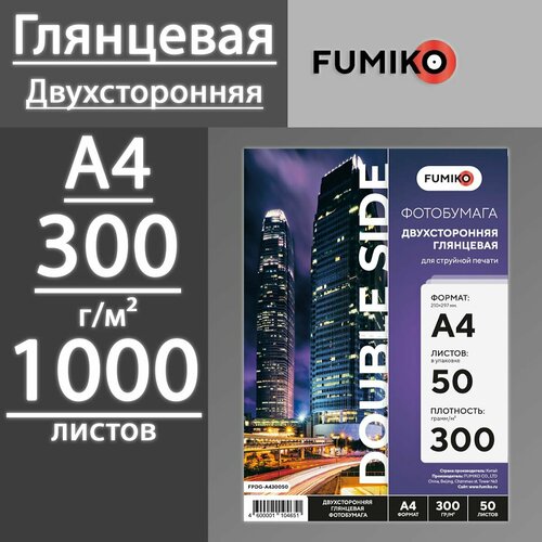 Купить Фотобумага FUMIKO глянцевая двухсторонняя 300 г, A4, 1000 листов (20 пачек по 50л) с доставкой по всей России.