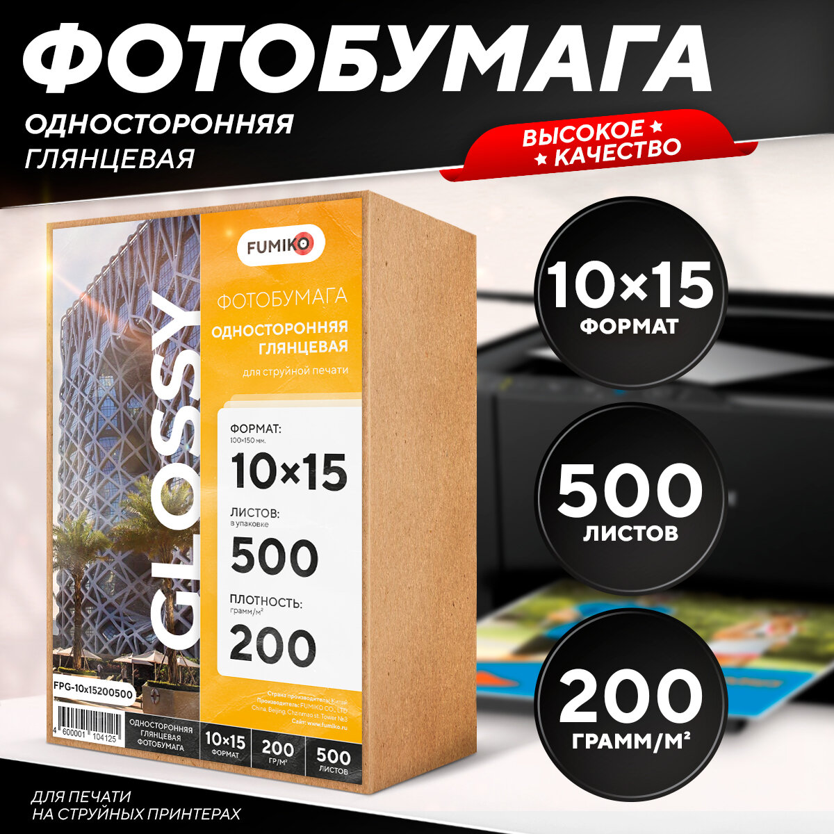 Фотобумага А6 глянцевая односторонняя плотностью 200 г/м2. Размер 10х15 см, в пачке 500 листов. Максимальное разрешение печати: 5760 dpi. Фото бумага глянцевая для струйного принтера. С обратной стороны листа фотобумага белая, без надписей и разметок.