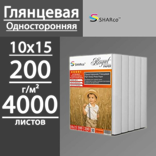 Купить Фотобумага SHARco глянцевая односторонняя 200 г, 4R (10х15), 4000 листов (8 пачек по 500 л) с доставкой по всей России.