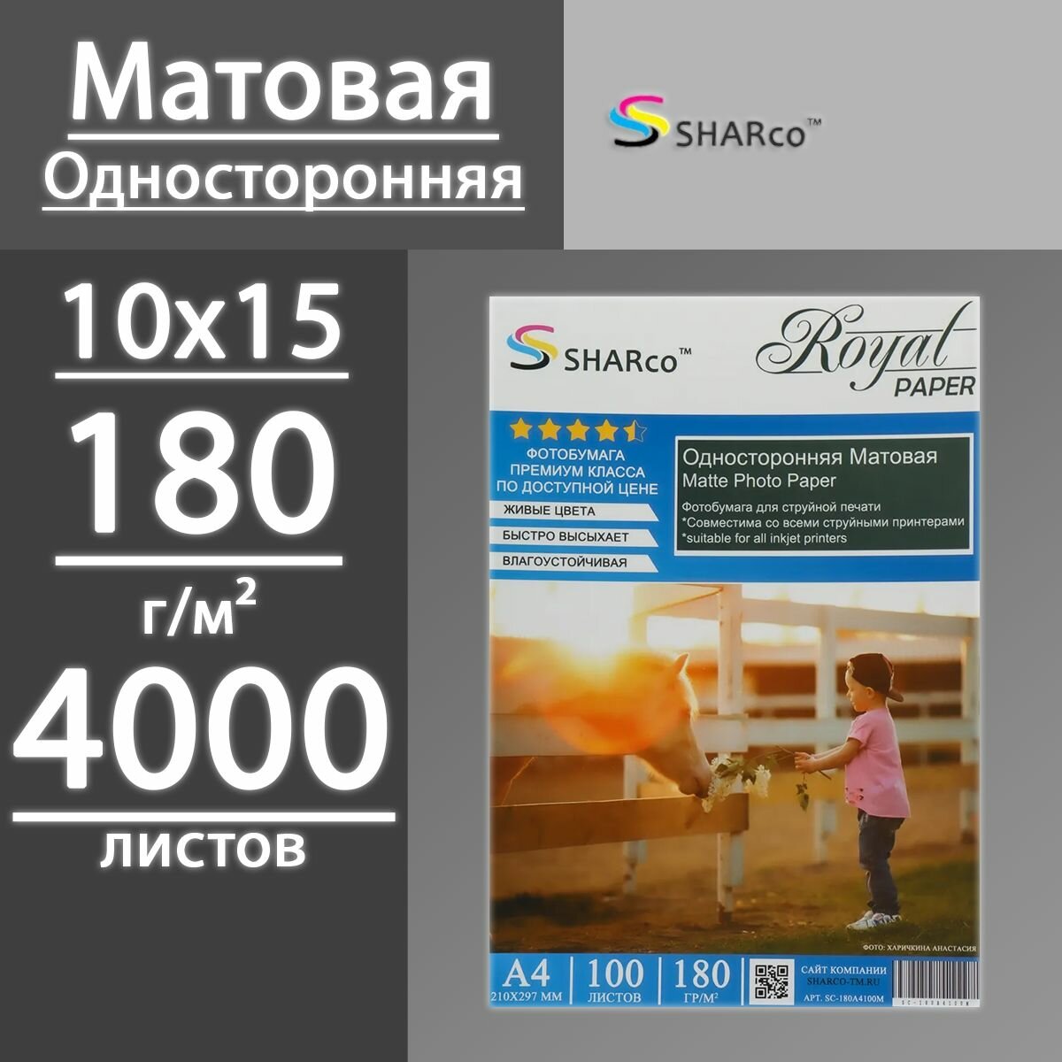 Фотобумага SHARCO премиум класса, предназначена для печати на струйных принтерах всех типов и моделей. Живые цвета, быстро высыхает, влагоустойчивая.