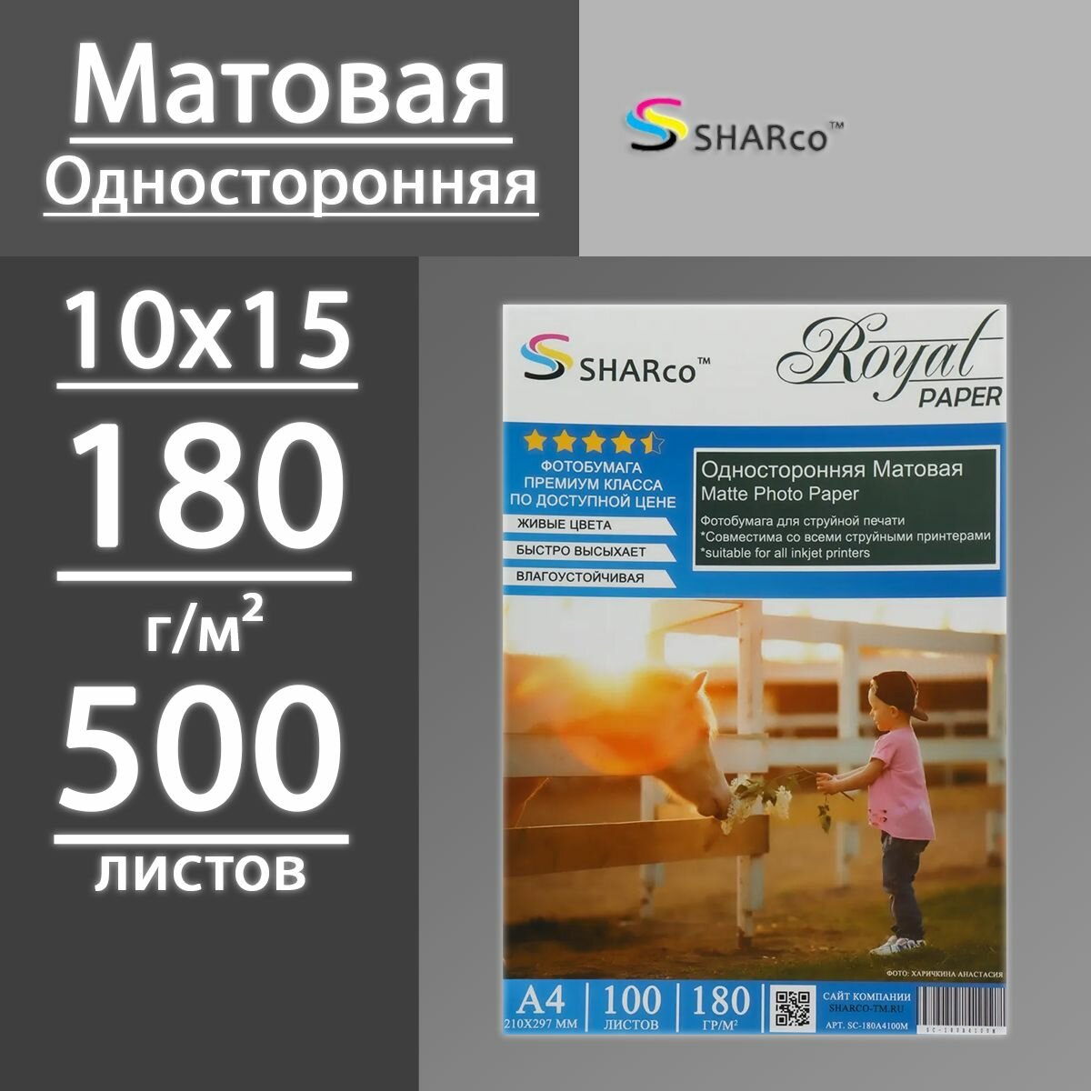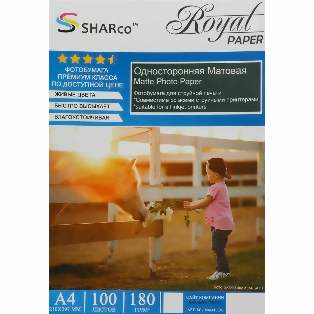 Фотобумага SHARCO премиум класса, предназначена для печати на струйных принтерах всех типов и моделей. Живые цвета, быстро высыхает, влагоустойчивая.