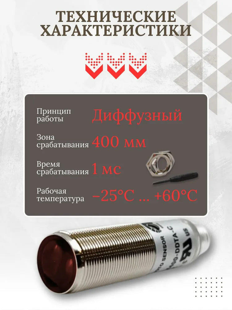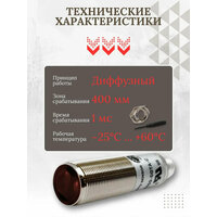 Преимущество этого фотодатчика заключается в его большой дальности срабатывания до 400 мм. Это позволяет использовать его в различных приложениях, где требуется точное определение расстояния. Кроме того, он оснащен разъемом на корпусе M12, что облегчает его установку и подключение к другим устройствам.