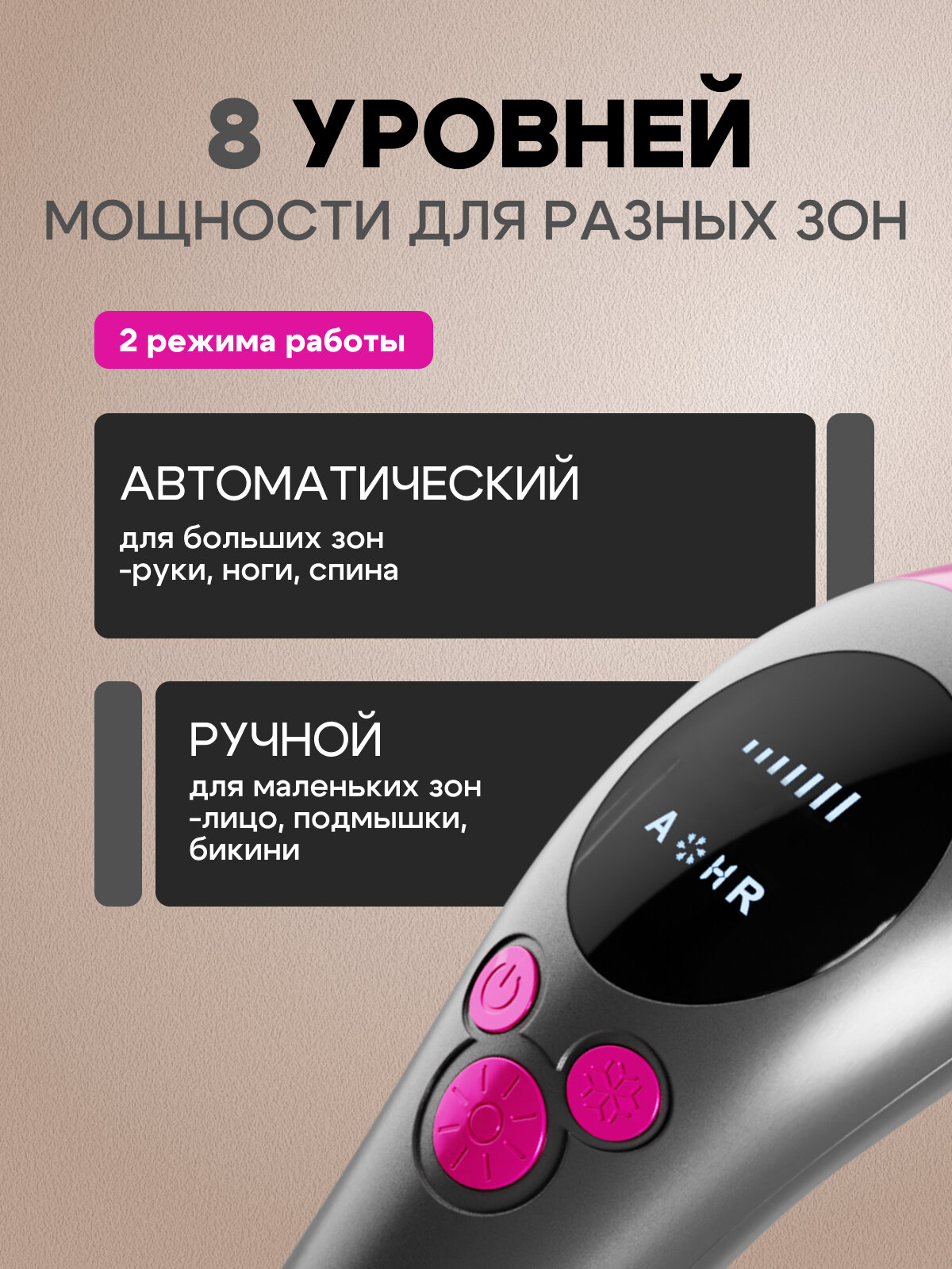 Представляем вашему вниманию фотоэпилятор лазерный INCOOL — современный бьюти-гаджет, который обеспечит вам безболезненное удаление волос в домашних условиях. Этот уникальный аппарат создан для тех, кто ценит комфорт и эффективность в уходе за собой. С его помощью вы сможете легко и безопасно избавиться от нежелательных волос на любом участке тела, включая зону бикини и лицо. Удобство использования фотоэпилятора INCOOL подчеркивается его многофункциональностью. Прибор оснащен двумя режимами работы: ручным и автоматическим, а также предлагает 8 уровней мощности. Это дает возможность индивидуально настроить интенсивность процедуры в зависимости от чувствительности вашей кожи. Если вы почувствуете дискомфорт, вы всегда можете снизить мощность. Одним из ключевых преимуществ является наличие режима охлаждения. Эта функция обеспечивает дополнительный комфорт во время процедуры, снижая ощущение тепла и минимизируя дискомфорт. Охлаждение помогает защитить кожу от перегрева и делает процесс удаления волос более приятным. Этот профессиональный домашний эпилятор также станет отличным подарком для ваших близких. Он подходит как для женщин, так и для мужчин, что делает его универсальным решением для всей семьи. В комплекте с прибором идут сетевой адаптер, инструкция, защитные очки для безопасного проведения процедуры и бритва для тела. Не упустите возможность сделать свою жизнь комфортнее и красивее! Это ваш шанс забыть о бритвах и восковых полосках, наслаждаясь гладкой кожей каждый день. Идеальный подарок девушке на любой праздник — день рождения, 8 марта, Новый год или просто знак внимания к близким!