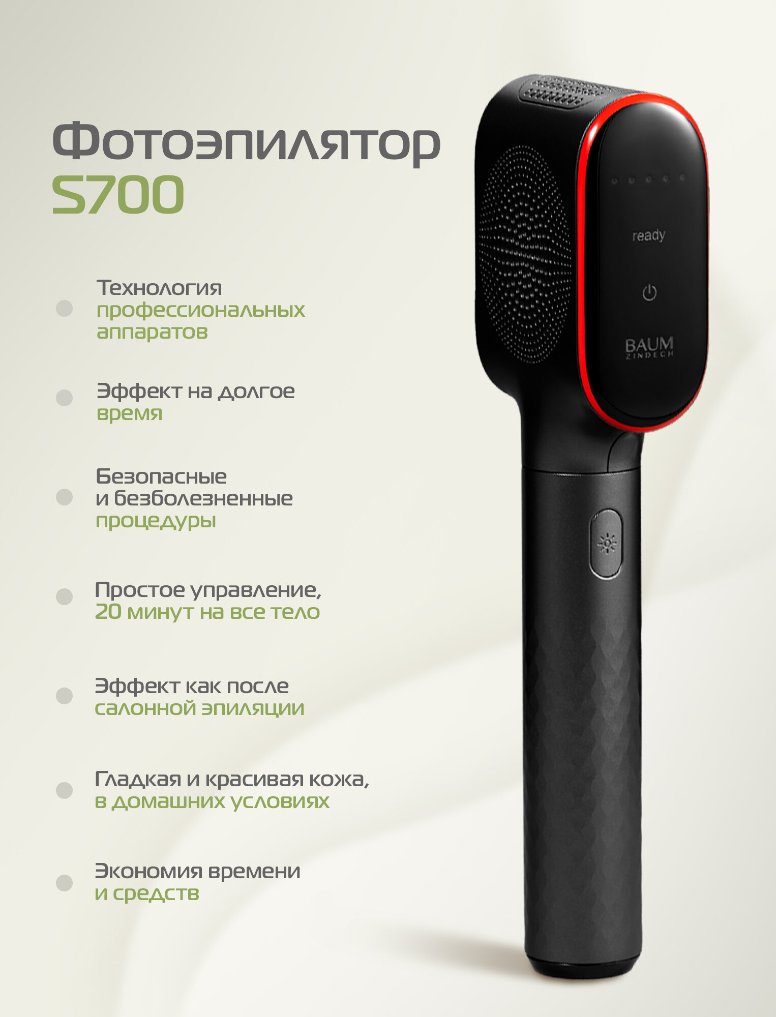 Купить Фотоэпилятор лазерный BAUM ZINDECH S700, домашний, лазерный эпилятор для зоны бикини, лица, тела с доставкой по всей России.