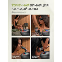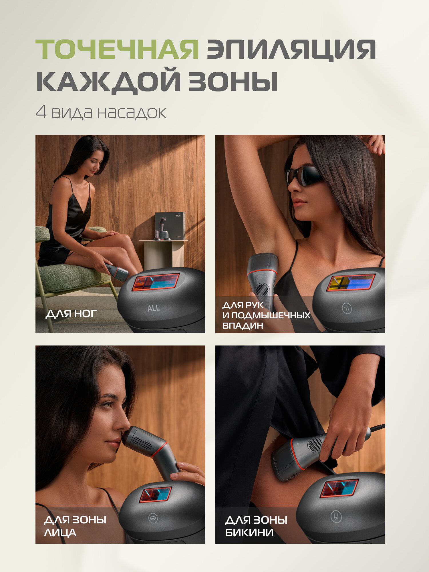 | Подробная комплектация | Эпилятор, 4 сменные насадки, мешок для хранения, защитные очки для фотоэпиляции, станция для стерилизации, зарядное устройство, инструкция. |