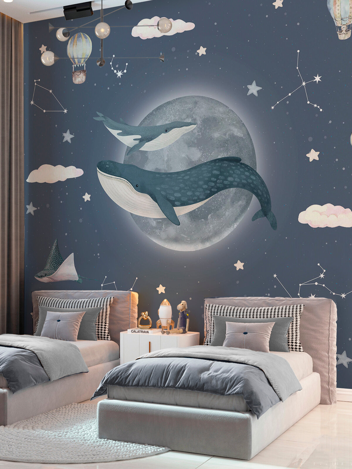 Фотообои детские флизелиновые на стену 3D киты в небе 300х270 (ШхВ), 3д обои в детскую: сравнение цен, характеристики, фото, актуальное наличие и цены.