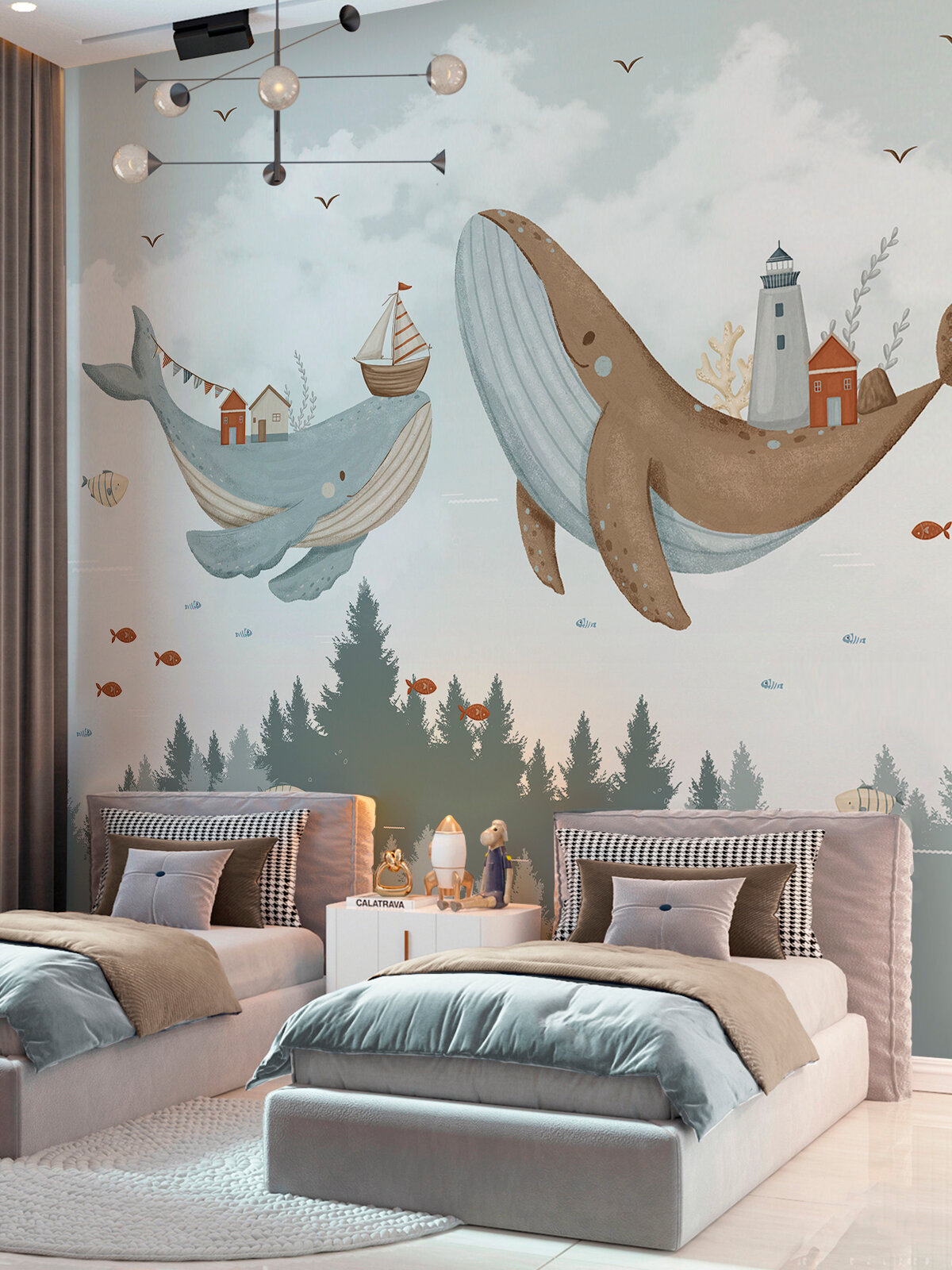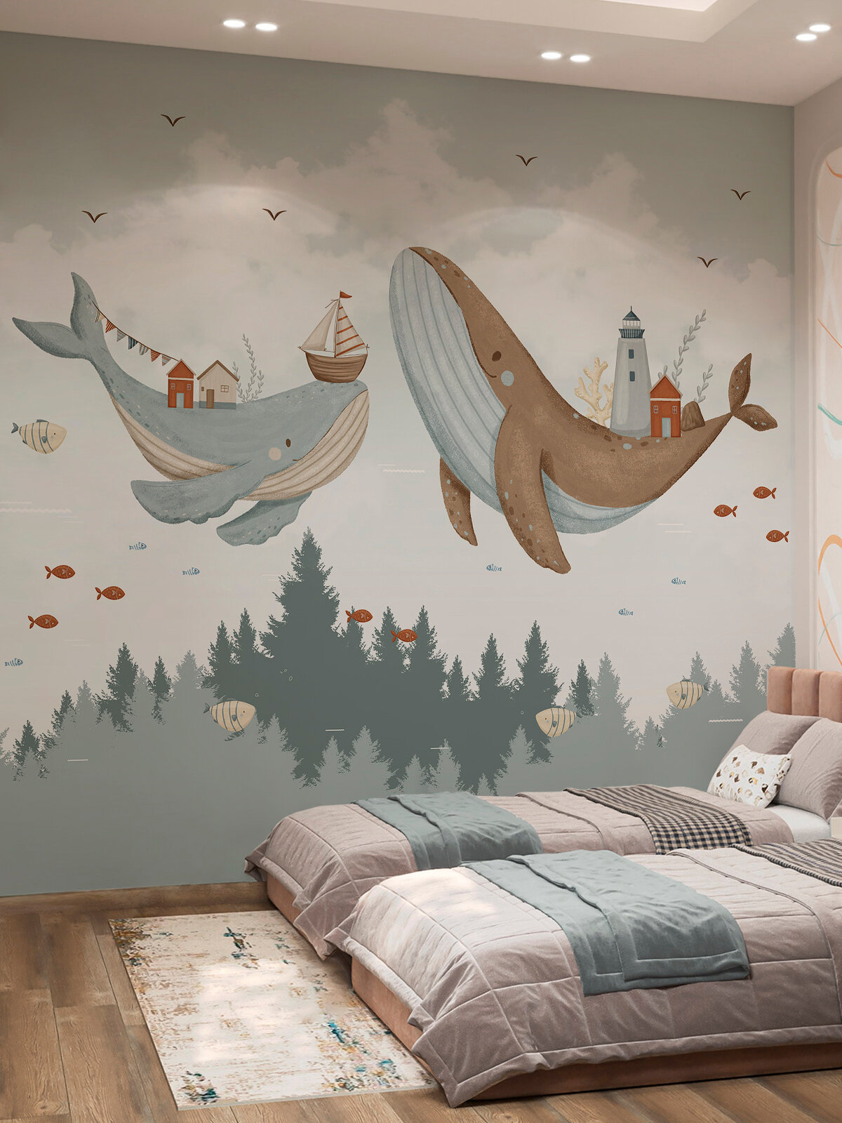 Фотообои детские флизелиновые на стену 3D «Парящие киты 2 » 300х250 (ШхВ), 3д обои в детскую: сравнение цен, характеристики, фото, актуальное наличие и цены.