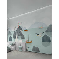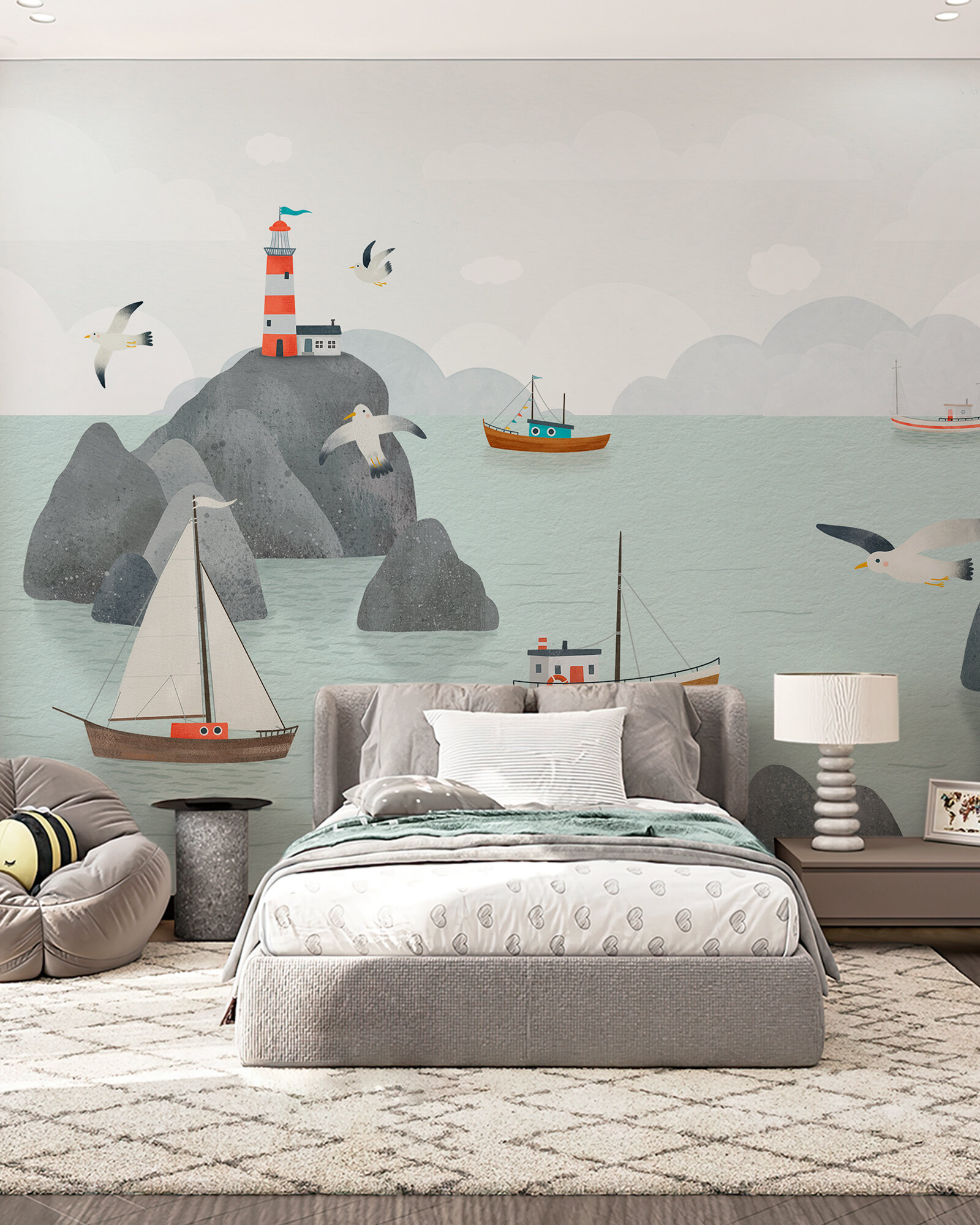Купить Фотообои детские флизелиновые на стену 3D «Пасмурное морское утро 2» 600х270 (ШхВ), 3д обои в детскую с доставкой по всей России.