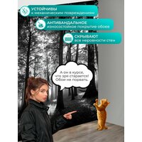 Фотообои моющиеся ударопрочные «Черно-белый, представляющие поэтичный лес с высокими деревьями и густыми тенями, где за деревьями скрываются сладостные» 200×300 см. флизелиновые на стену
