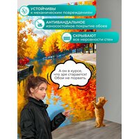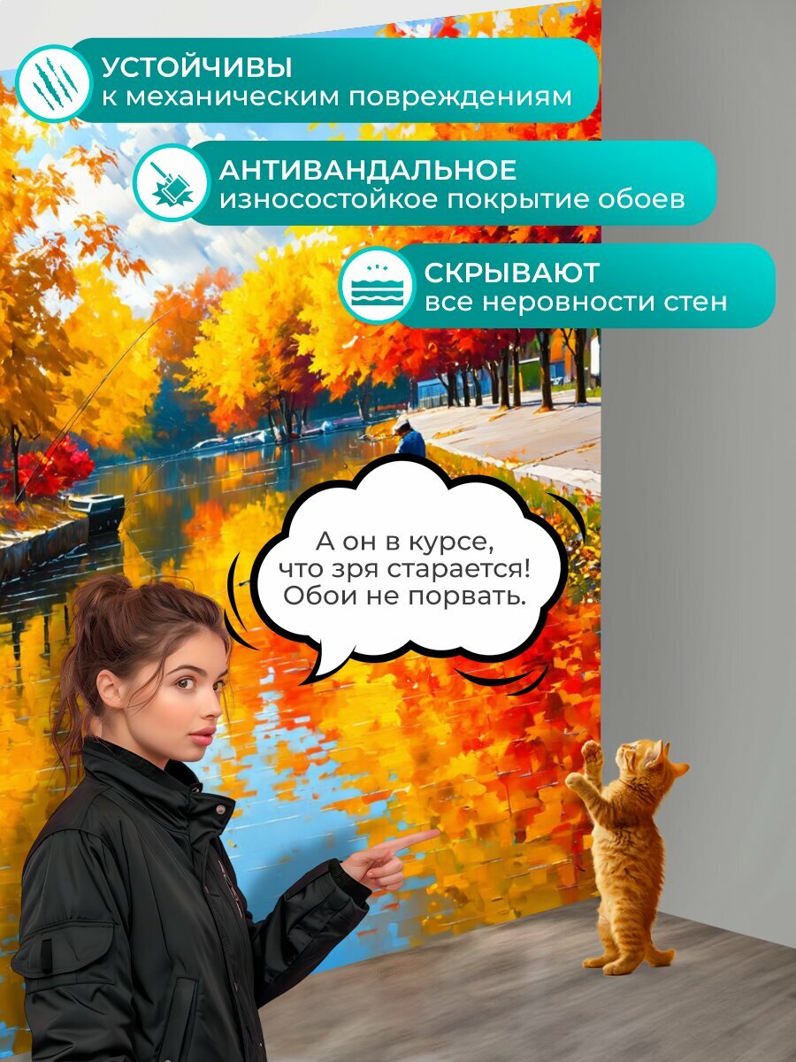 Фотообои моющиеся ударопрочные «Рыбалка осенью на речной площади с золотыми, красными и оранжевыми листьями, отражающимися в воде. стиль: живопись» 200×300 см. флизелиновые на стену: сравнение цен, характеристики, фото, актуальное наличие и цены.