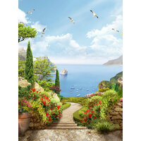Купить Фотообои на стену флизелиновые Foto Print «Цветочный сад с видом на море» 200×270 см (ШxВ), фотообои море, Греция с доставкой по всей России.