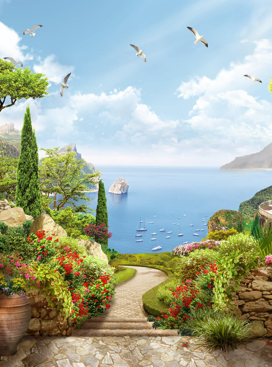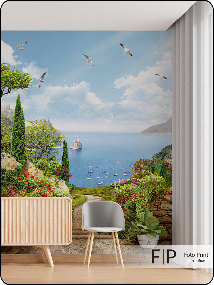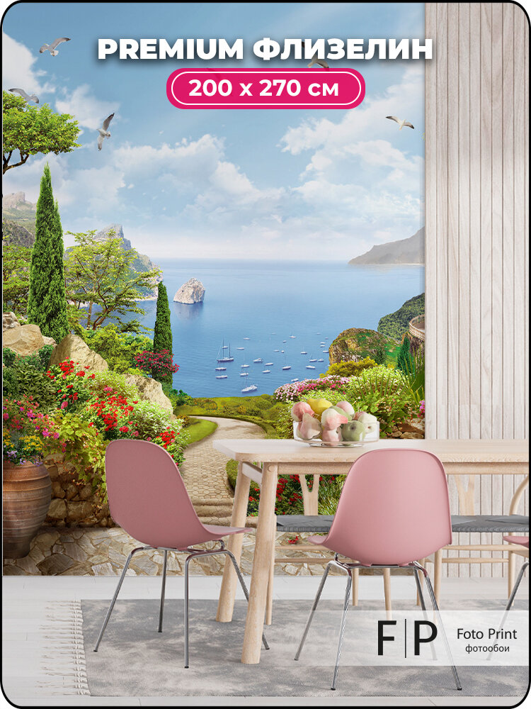 Фотообои на стену флизелиновые Foto Print «Цветочный сад с видом на море» 200×270 см (ШxВ), фотообои море, Греция: сравнение цен, характеристики, фото, актуальное наличие и цены.
