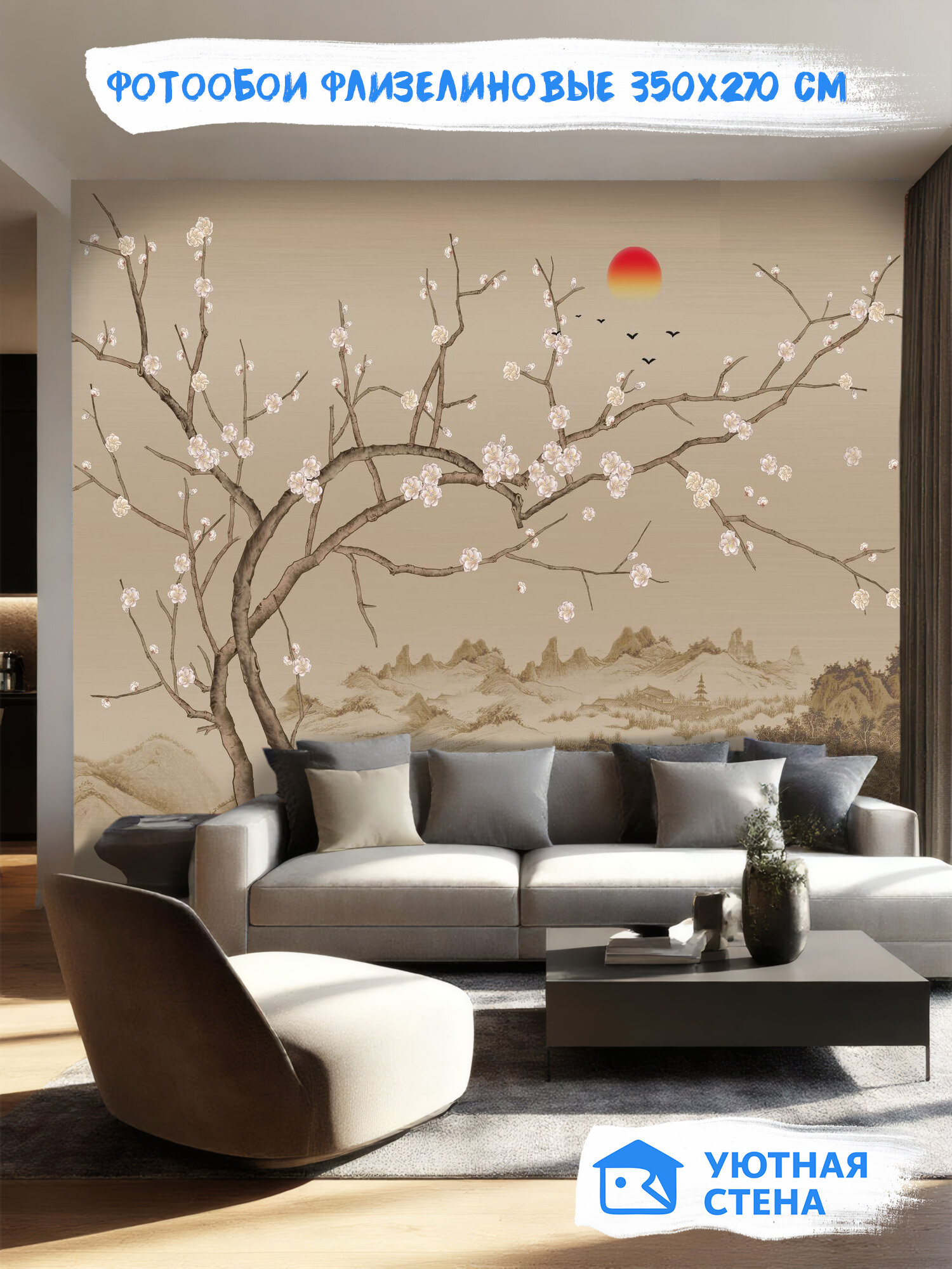 Купить Фотообои Уютная стена «Восточные образы с сакурой», флизелиновые, 350х270 см с доставкой по всей России.