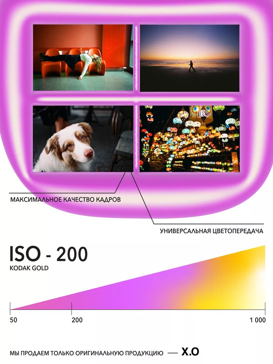 Фотоплёнка Kodak Gold 200 35 мм 36 кадров - это легендарная цветная негативная плёнка, созданная для тех, кто хочет получить яркие, живые и по-настоящему тёплые кадры. Она идеально подходит для съёмки на классические плёночные фотоаппараты и совместима со всеми камерами формата 35 мм. Kodak Gold 200 отличается мягкой цветопередачей, лёгким винтажным оттенком и естественными полутонами, благодаря которым каждая фотография выглядит атмосферно и живо. Эта плёнка для фотоаппарата Kodak - универсальное решение как для начинающих, так и для опытных фотографов. С чувствительностью ISO 200 она подходит для дневной съёмки, прогулок по городу, пейзажей и портретов при естественном освещении. Kodak Gold 200 прощает незначительные ошибки экспозиции и всегда даёт стабильный результат. Цветная фотоплёнка Kodak Gold обладает характерной теплотой, благодаря которой снимки выглядят насыщенно, но при этом не теряют естественности. Её палитра особенно хорошо передаёт кожу, солнечные оттенки и мягкий золотистый свет - именно за это миллионы фотографов по всему миру выбирают плёнку Kodak. Её легко проявить в любом фотолабе по стандартному процессу C-41, а отпечатанные снимки сохраняют выразительность и цвет на долгие годы. Плёнка Kodak Gold 200 подойдёт для большинства фотоаппаратов - Canon, Nikon, Olympus, Pentax и других моделей с катушкой 35 мм. Её часто выбирают для съёмки путешествий, семейных историй и уличных сюжетов, ведь именно она помогает передать настроение момента и ту самую магию света. Мы в X.O STORE поставляем только свежую плёнку Kodak, тщательно проверяем каждую партию и упаковываем катушки так, чтобы они дошли до вас в идеальном состоянии. Kodak Gold 200 35 мм 36 кадров - это не просто фотоплёнка, а возможность почувствовать настоящее удовольствие от аналоговой фотографии, где каждый кадр имеет значение и рождается в ожидании проявки. За примерами заглядывайте к нам в комментарии)