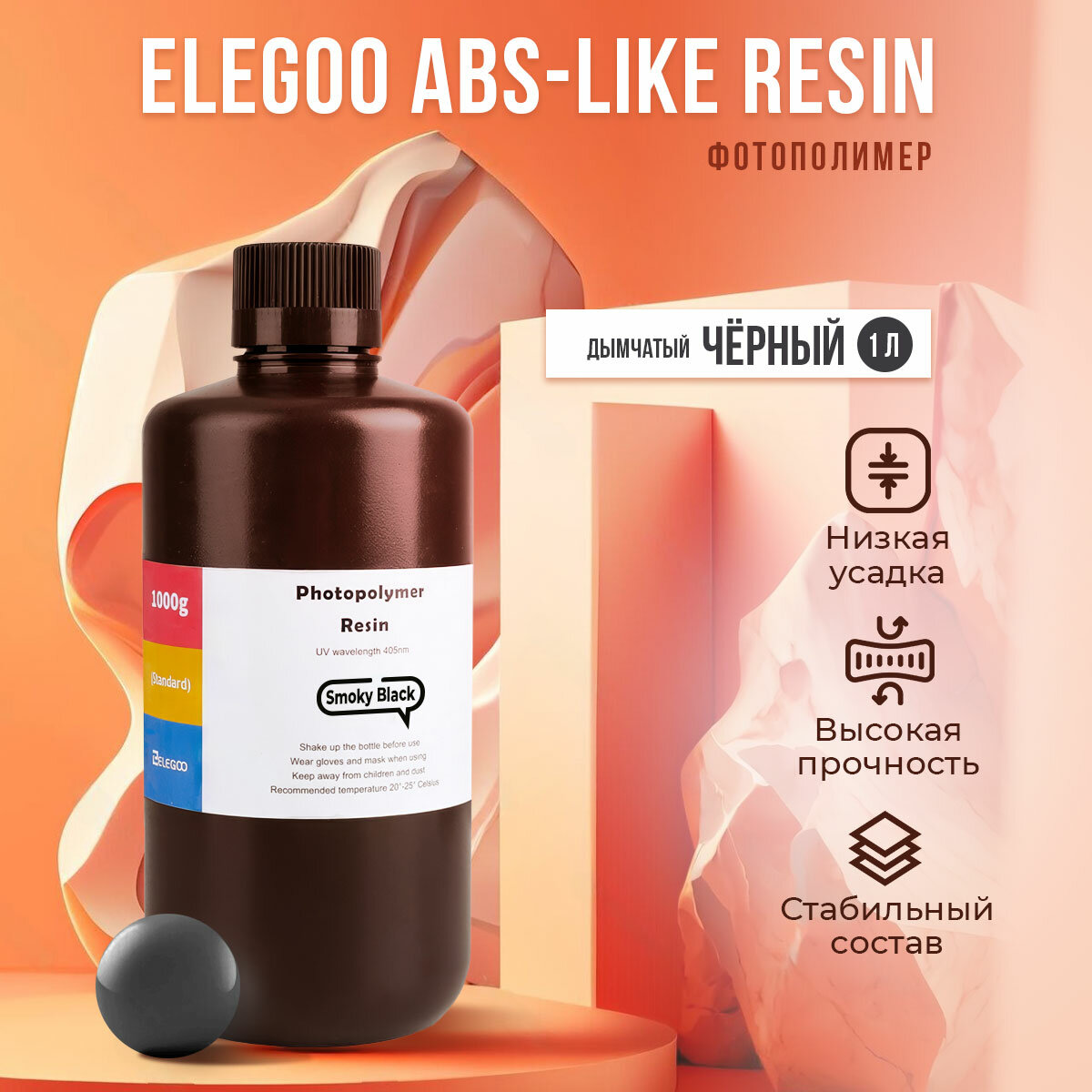 Фотополимерная смола Elegoo ABS-Like Resin Чёрный дымчатый, 1 л: сравнение цен, характеристики, фото, актуальное наличие и цены.