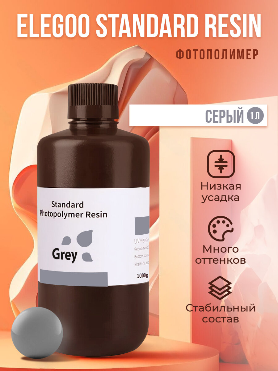 Фотополимерная смола Elegoo Standard Resin, Серый, объем 1 л: сравнение цен, характеристики, фото, актуальное наличие и цены.