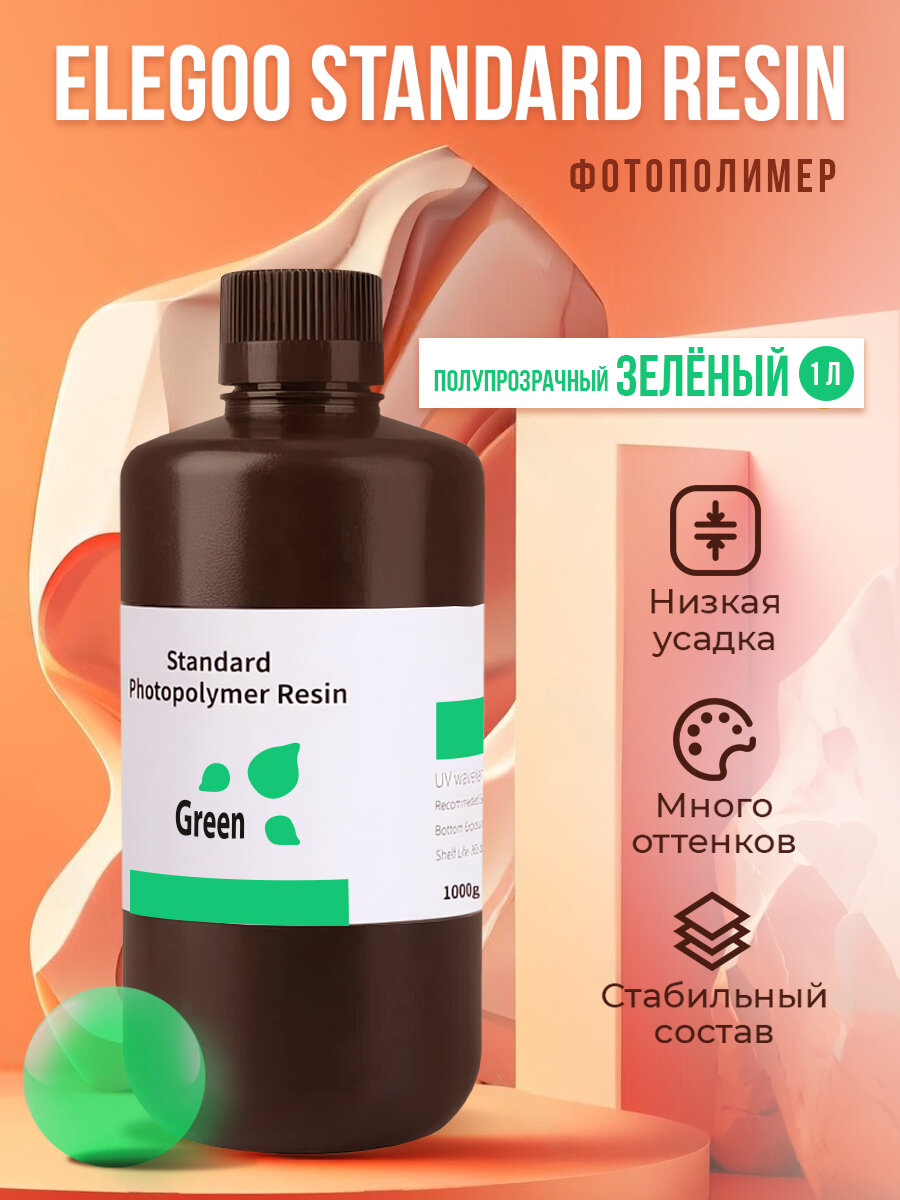 Фотополимерная смола Elegoo Standard Resin Зелёный (полупрозрачный), 1 л: сравнение цен, характеристики, фото, актуальное наличие и цены.