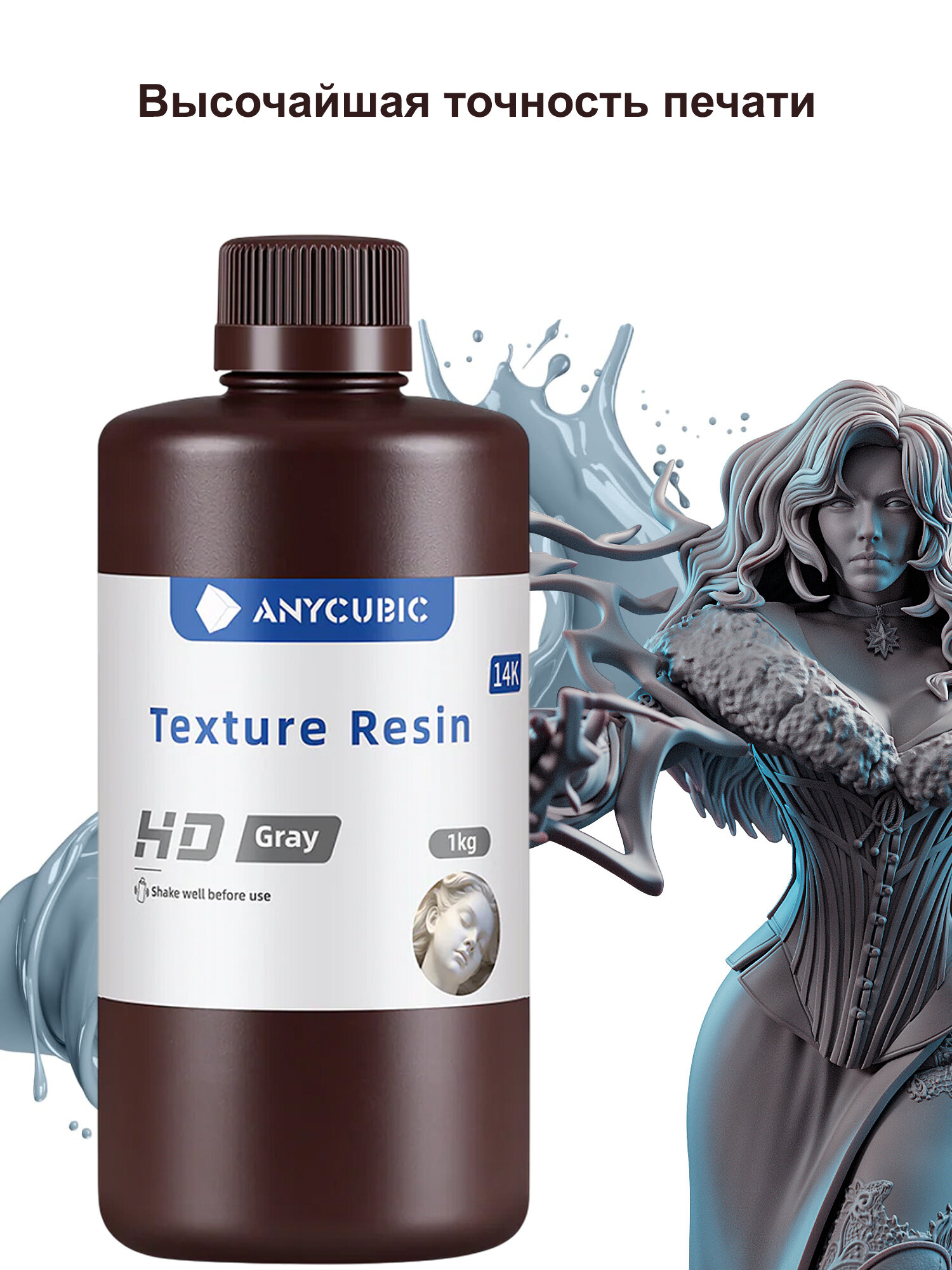 Фотополимерная смола ANYCUBIC Texture Resin 14K Серая - это уникальный материал для 3D-печати, который обеспечивает высокую точность и качество печати. Этот продукт отличается своей прочностью и детализацией, что делает его идеальным выбором для создания моделей, прототипов и других объектов из 3D-моделирования.