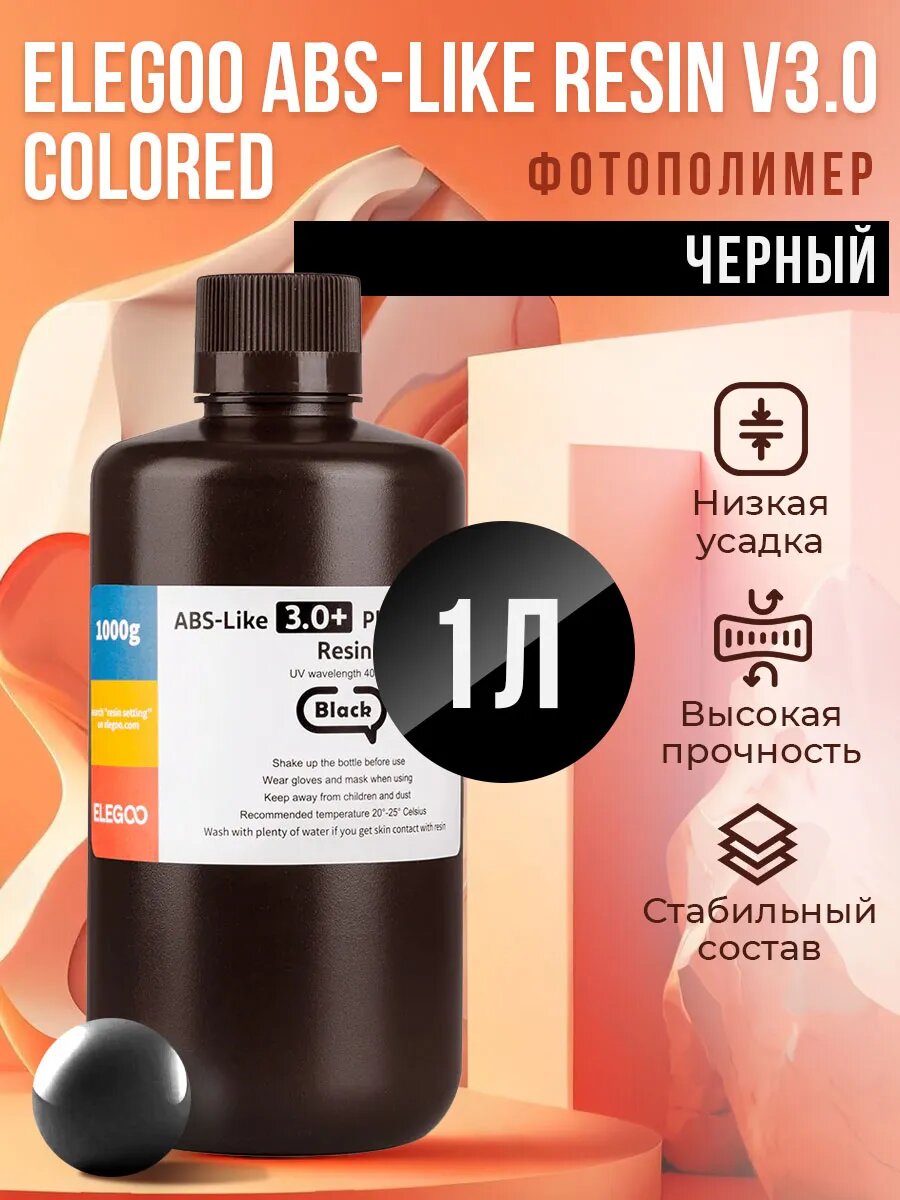 Фотополимерная смола Elegoo ABS-like Resin V3.0 Colored, Чёрный, 1 л: сравнение цен, характеристики, фото, актуальное наличие и цены.