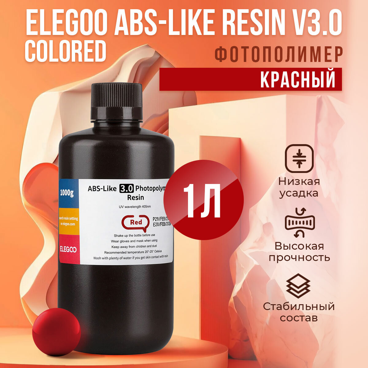 Фотополимерная смола Elegoo ABS-like Resin V3.0 Colored, Красный, 1 л: сравнение цен, характеристики, фото, актуальное наличие и цены.