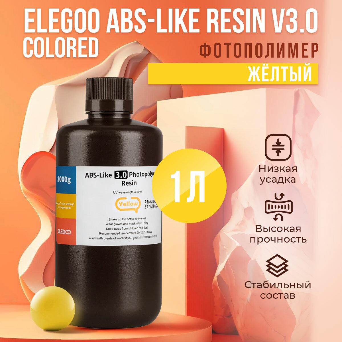 Фотополимерная смола Elegoo ABS-like Resin V3.0 Colored, Жёлтый, 1 л: сравнение цен, характеристики, фото, актуальное наличие и цены.