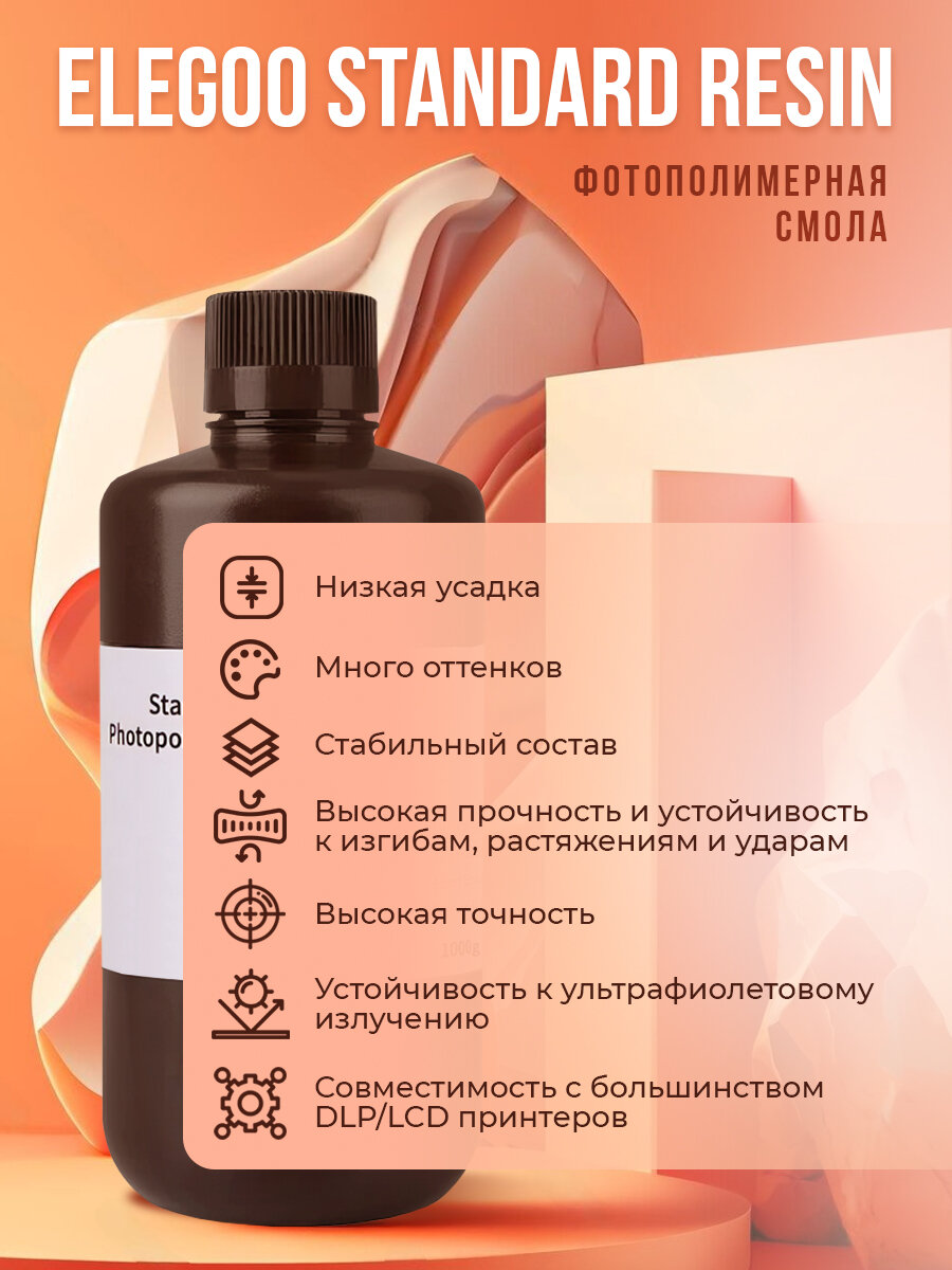 Купить Фотополимерная смола Elegoo Standard Resin Чёрный, объем 1 л с доставкой по всей России. Фотополимерная смола Elegoo Standard Resin Чёрный, объем 1 л: сравнение цен, характеристики, фото, актуальное наличие и цены.