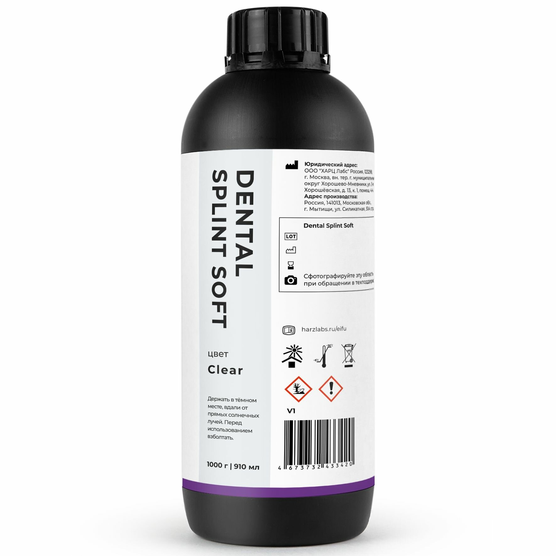 Фотополимерная смола Harz Labs Dental Splint Soft (LCD/DLP) 1кг представляет собой высококачественный материал, предназначенный для изготовления мягких штифтов и временных стоматологических протезов с использованием 3D-печати.