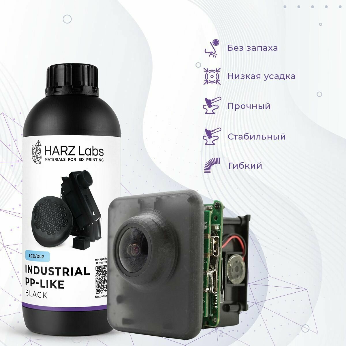 Фотополимер HARZ Labs Industrial PP-like смола российского производителя, предназначенная для SLA принтеров. Полимер черного цвета имеет физико-механические свойства литьевого полипропилена, что открывает новые возможности печати.
