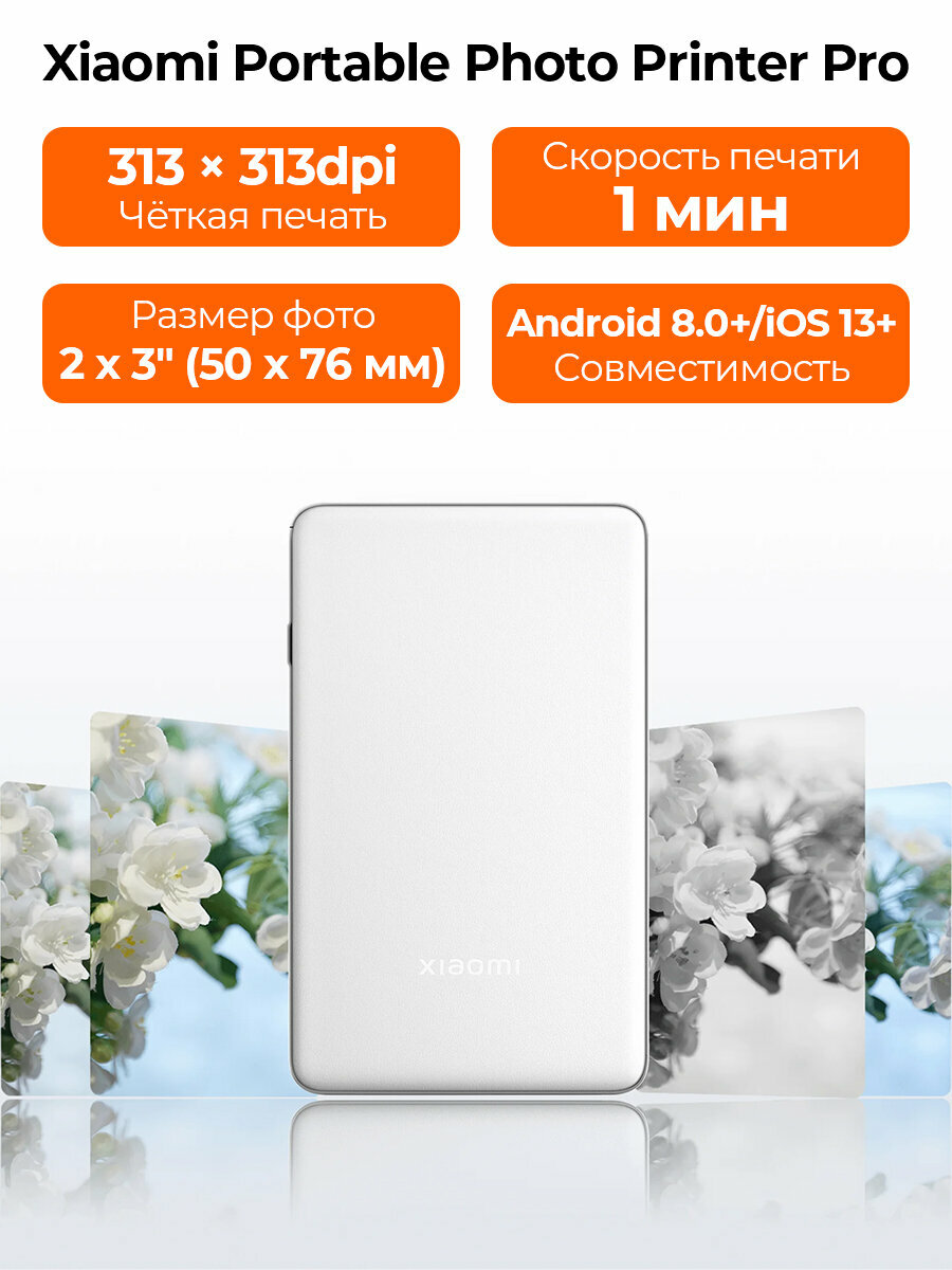 Инновационный портативный фотопринтер, который позволяет мгновенно печатать фотографии с высоким качеством прямо со смартфона. Компактные размеры и лёгкий вес делают его удобным в путешествиях и повседневной жизни, а поддержка термосублимационной печати с разрешением 313×313 dpi обеспечивает яркие, детализированные и долговечные снимки. Принтер поддерживает фотобумагу 2×3 дюйма, добавляет уникальные AR-видеоролики и голосовые сообщения, а также работает через приложение Mi Home с множеством креативных шаблонов и рамок. Совместим с Android и iOS, оснащён Bluetooth 5.2, встроенным аккумулятором на 880 мАч и портом USB Type-C.