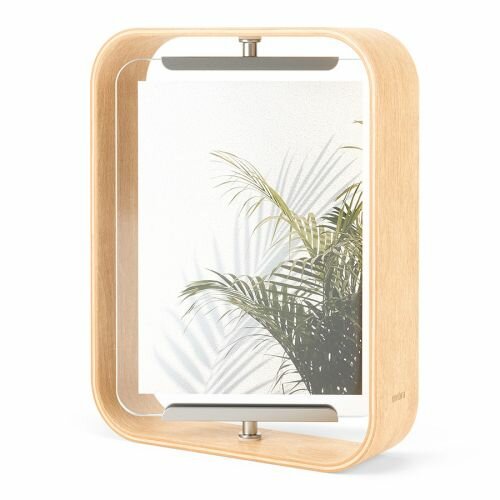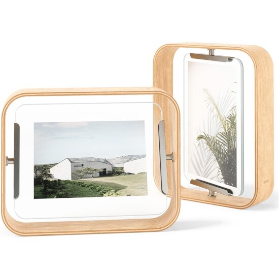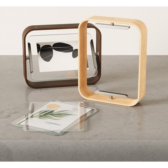 Фоторамка Bellwood добавит природное очарование в любое пространство, будь то жилая комната, кабинет или офис. Центральная часть рамки плавно вращается, что дает возможность демонстрировать поочередно две фотографии. Специальная конструкция позволяет менять параметры ориентации и размещать изображения как в портретном, так и альбомном режиме. Сочетание натуральной древесины и стекла обеспечивает изделию практичность, долговечность и привлекательный вид.