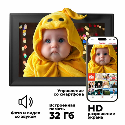 Дистанционно загружать новые фотографии и видео прямо со смартфона можно через приложение FRAMEO и подключение фоторамки к сети Wi-Fi. Приложение позволяет подключить до 30 пользователей, которые могут загружать изображения и видео на фоторамку из любой точки мира. Более того, к фотографиям можно добавлять подписи, а вы сможете реагировать на полученные снимки, отправляя реакции.