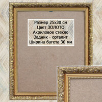 Фоторамка 25х30 см садко золото – это рамка из классического картинного багета. Ширина багета 30 мм, высота 18 мм. Цвет рамки – золото. Из этого багета изготавливается более 30 размеров рамок, что позволяет создавать экспозиции на стене из фотографий любых размеров в едином стиле. Размер вставляемой фотографии 40х40 см, размер видимой части (вид спереди) 23,8х28,8 см. В состав рамки входит акриловое (пластиковое) стекло, задник из оргалита, комплект крепежа для вертикального или горизонтального подвешивания. Используются для пазлов, вышивок, аппликаций, других творческих работ.