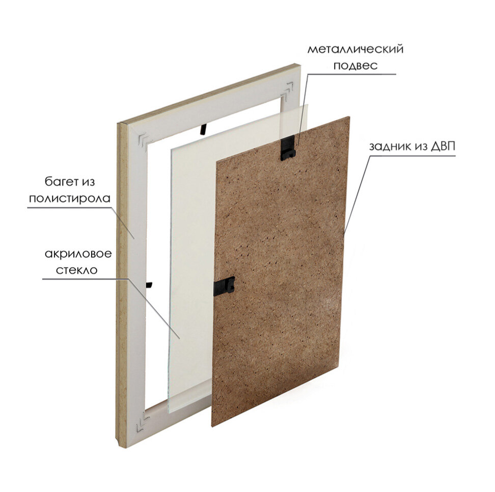Характеристики: Размер фотографий, см. - 21х30; Материал багета - Пластик; Ширина багета, см. - 1,8; Размеры (ВxШxГ), см. - 43,6 х 33,6 х 1,8; Вес брутто, г. - 545; Примечание - стекло из полистирола;