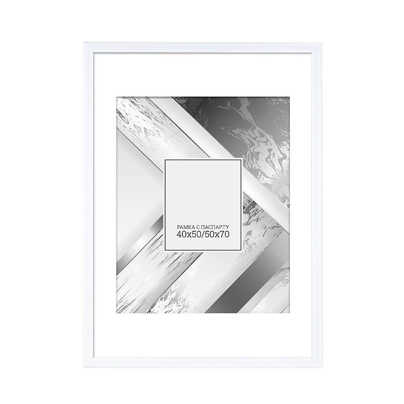Лаконичная, стильная рамка с багетом из пластика белого цвета для фотографии, постера, рисунка, картины, вышивки, мозаики. Рамка с профессиональным паспарту 40х50 см, где видимая область 38,5 х 48,8 см. Размеры самой рамки 73,6 х 53,6 см, весьма большая. Паспарту белого цвета толщиной 1 мм, видны грани, благодаря этому рамка выглядит красиво и богато.