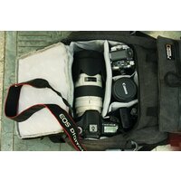 Рюкзак вмещает 15-дюймовый ноутбук фотокамеру 2-3 объектива, вспышку и личные вещи фотографа. Надежно защищая фото-видео технику, он отлично подойдет для туристических путешествий и прогулок. Для защиты от непогоды он снабжен влагозащитным чехлом. Линейка выполнена в темно сером цвете из безвредного для окружающей среды материала, типа пеньки и хлопка.