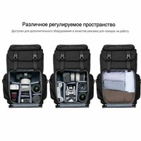- Фоторюкзак K&F Concept вмещает зеркальный фотоаппарат и 4-5 дополнительных объектива. Также рюкзак имеет отделение для ноутбука 15.6 дюймов.