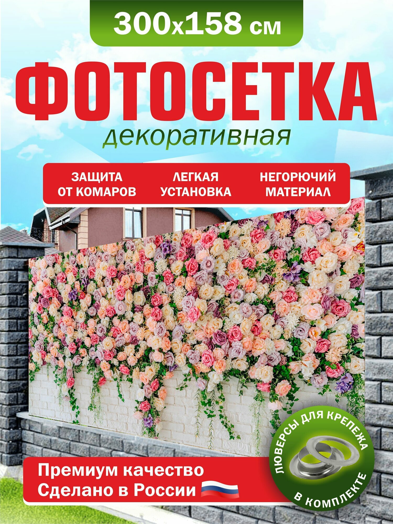 Купить Фотосетка для забора беседки террасы фасада 300х158см с доставкой по всей России.
