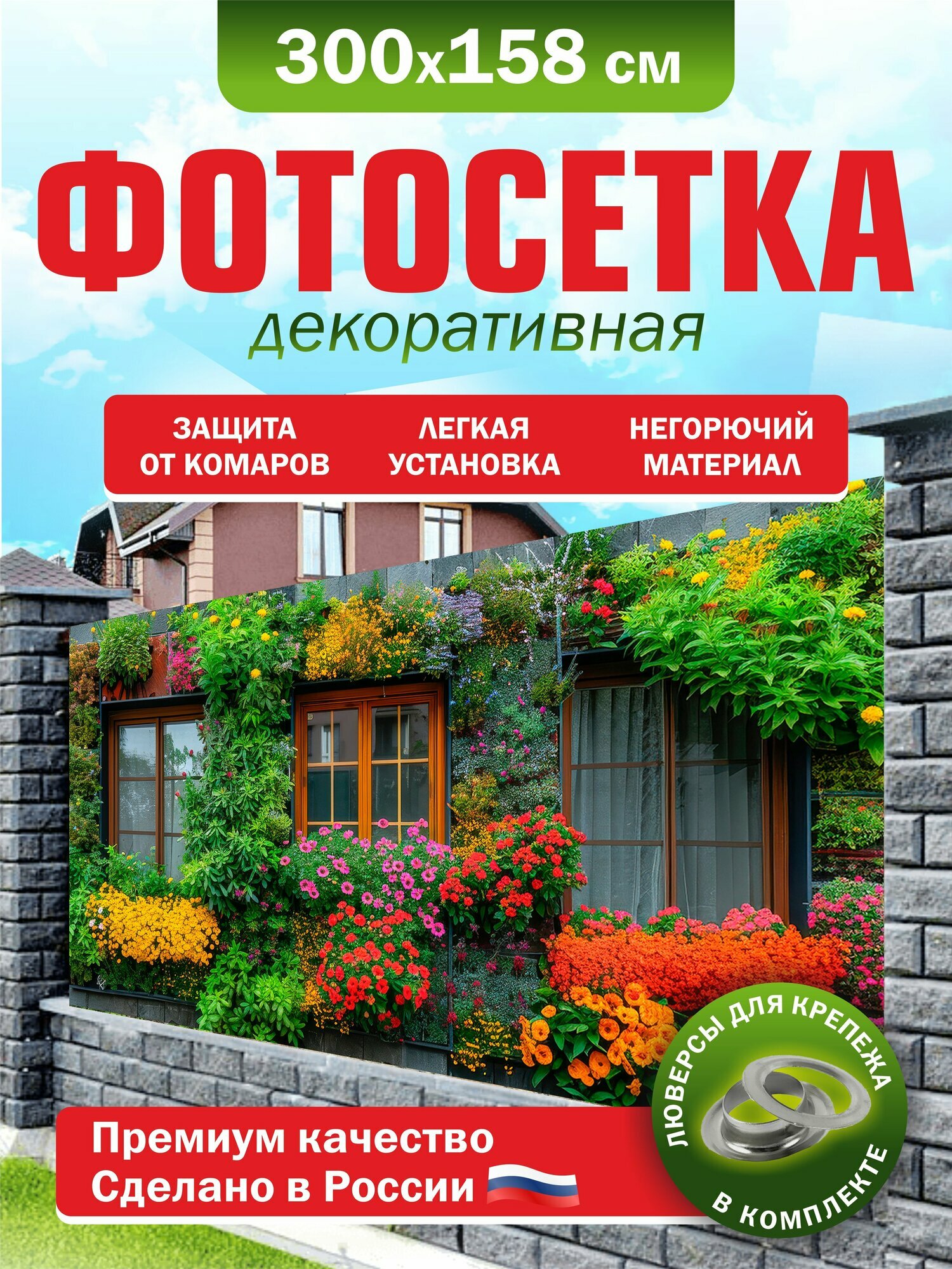 Купить Фотосетка для забора беседки террасы фасада 300х158см с доставкой по всей России.