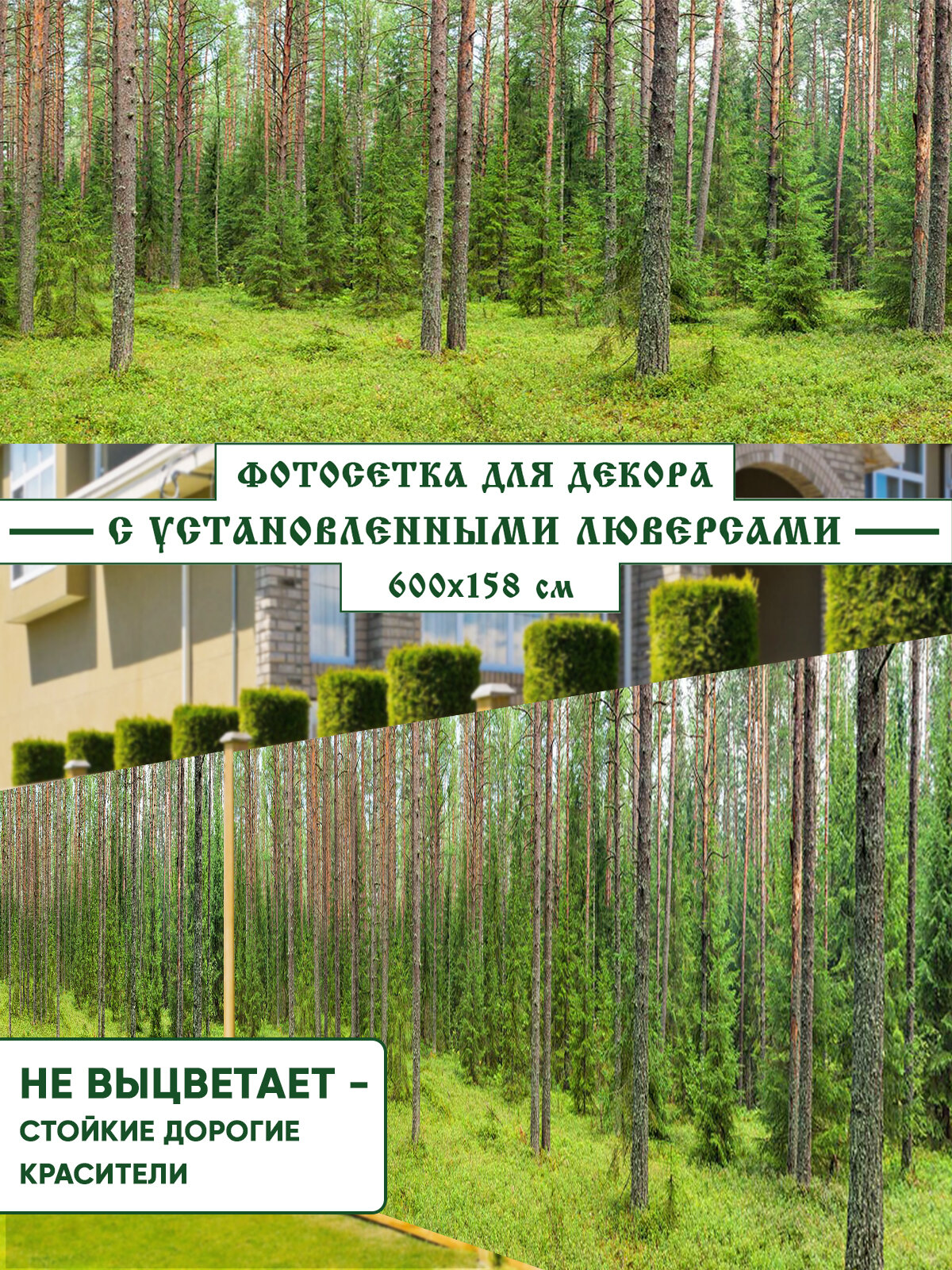 Фотосетка Хвойный лес забор это прекрасный способ украсить Ваш участок без лишних затрат!