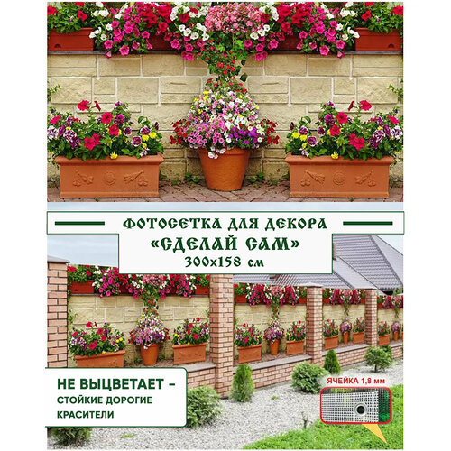 Фотосетка Забор с вазонами это прекрасный способ украсить Ваш участок без лишних затрат!