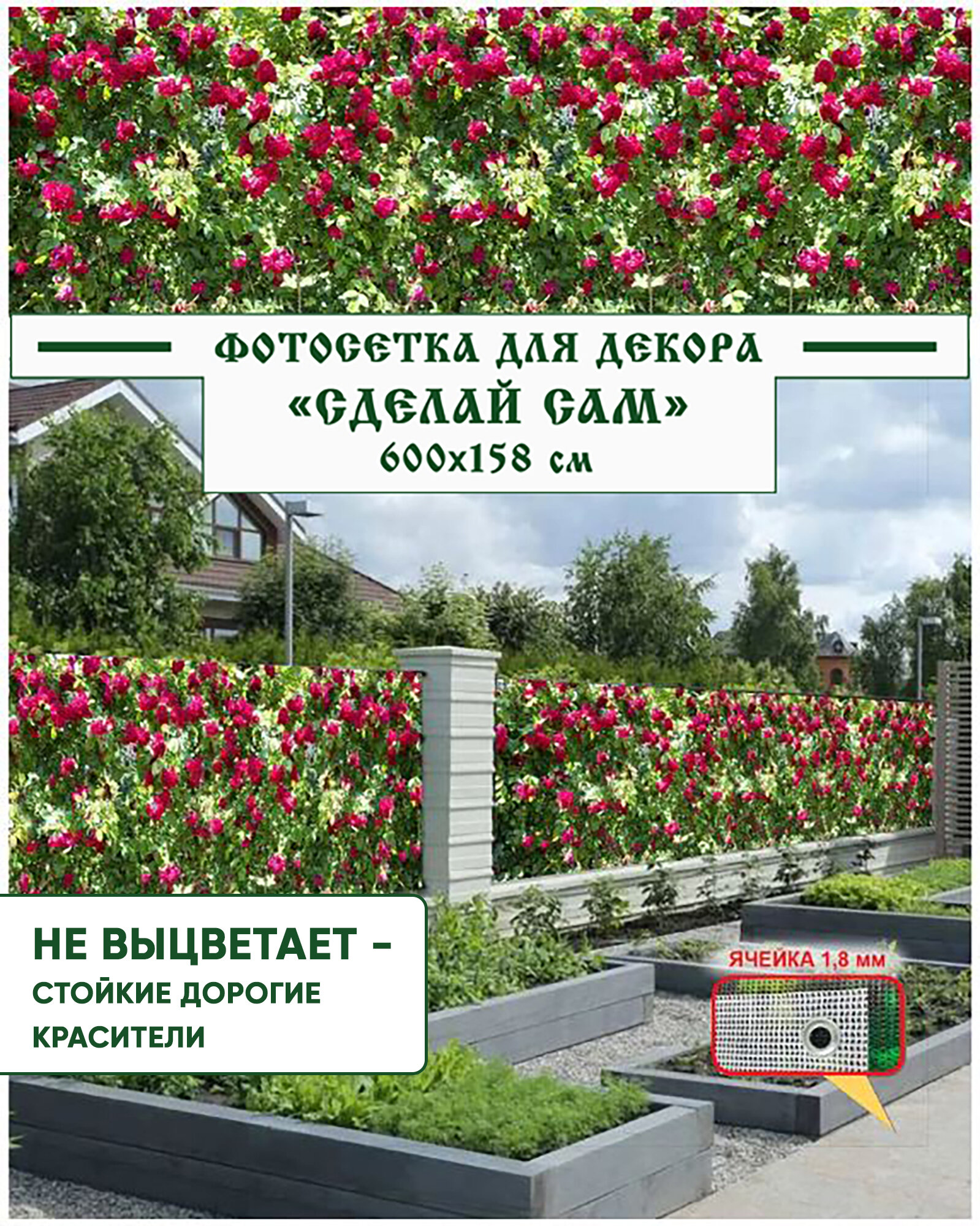 Фотосетка Забор "Розы" это прекрасный способ украсить Ваш участок без лишних затрат!
