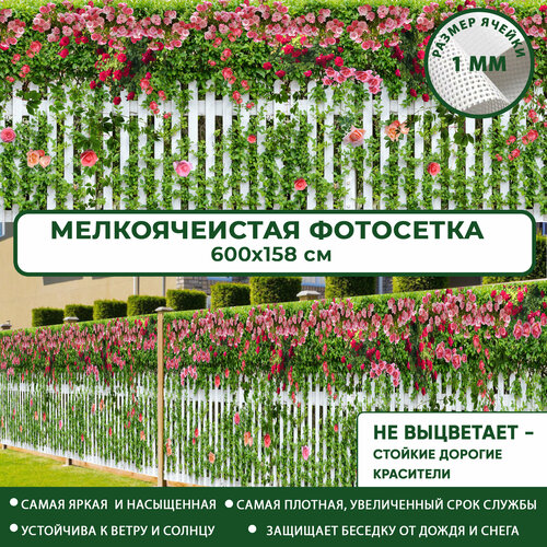 Купить Фотосетка Мечта для забора беседки террасы 600×158 см, «Розовый палисадник» , фотофасад для дома дачи сада с доставкой по всей России.