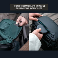 Многофункциональный рюкзак для профессиональных фотографов с большим набором оборудования. Включает в себя извлекаемую плечевую сумку, которую можно использовать отдельно (оставив рюкзак, например, в машине или в гостиничном номере). Передний карман расширяется на 8 литров, что позволяет положить в него личные вещи (одежду, средства гигиены) или же крупный электронный стабилизатор – такой как DJI Ronin или Zhiyun Crane. В комплект входит 11 разделителей различных размеров и форм, которые позволяют организовать внутреннее пространство под ваши индивидуальные требования. Также в комплекте идет внутренний ремень для фиксации длиннофокусных объективов и 2 внешних ремня для крепления таких аксессуаров как, например, штатив или туристический коврик (несколько точек крепления позволяют закрепить их как сбоку, так и снизу).