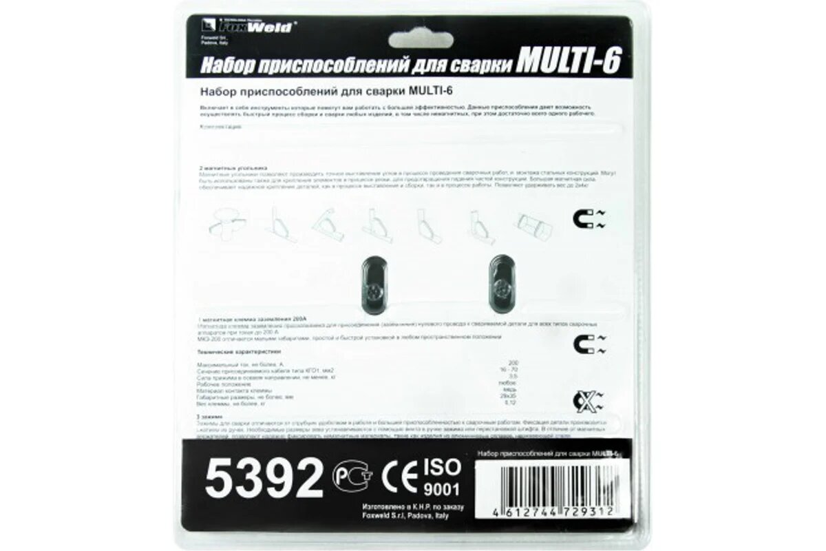 Foxweld Набор приспособлений д/сварки MULTI-6 комплект 6 предметов: 2 магн. уголка + 1 магн. клемма заземления, 3 зажима 6шт/уп, 12шт/кор. 5392: сравнение цен, характеристики, фото, актуальное наличие и цены.