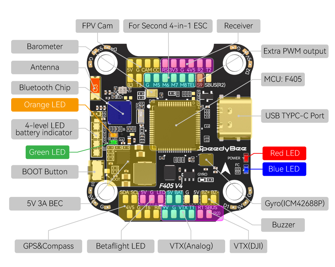 Купить SpeedyBee F405 V4 60A flying tower F405 V4 система управления полетом BLS 60A четыре в одном ESC 30×30 с доставкой по всей России.