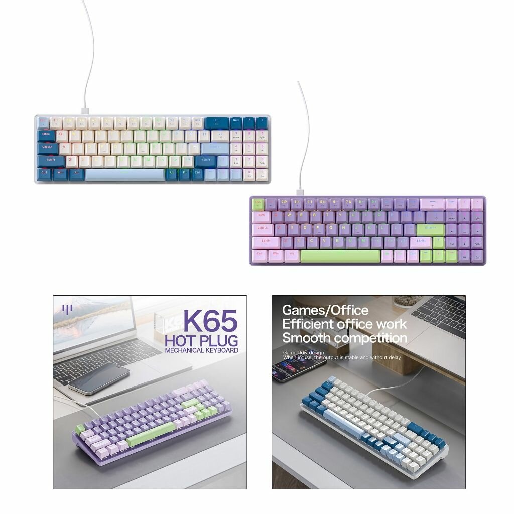 Купить Freewolf K65 Проводная механическая клавиатура с горячей заменой — голубой вал — черника с доставкой по всей России.
