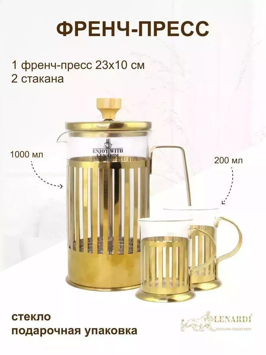 Френч-пресс 1000мл. и 2 стакана 200мл. 1 шт.: сравнение цен, характеристики, фото, актуальное наличие и цены.