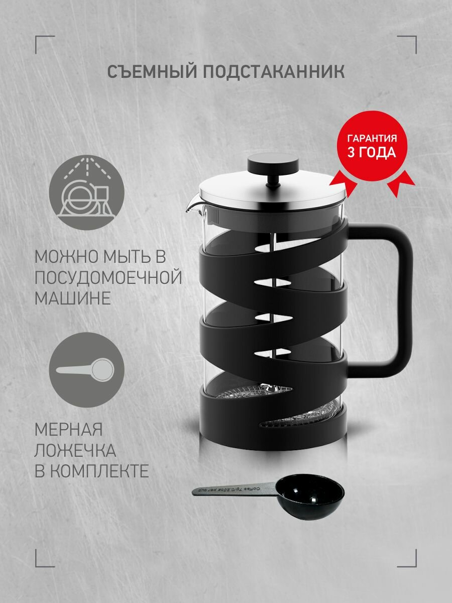 Многослойная система фильтрации препятствует попаданию мелких частичек в напиток и является полностью разборной для удобного и качественного ухода за изделием.
