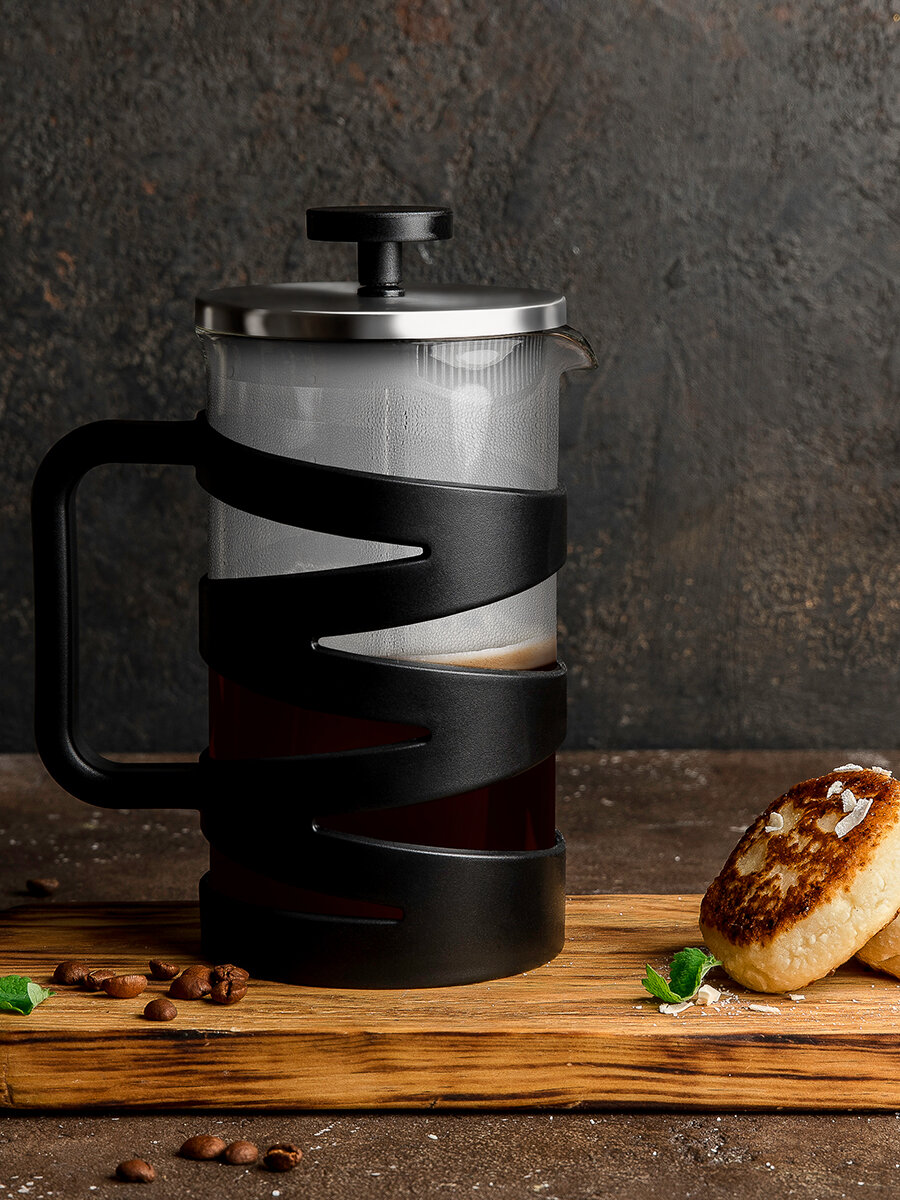 Удобная ручка френч-пресса не нагревается и не выскальзывает из рук.