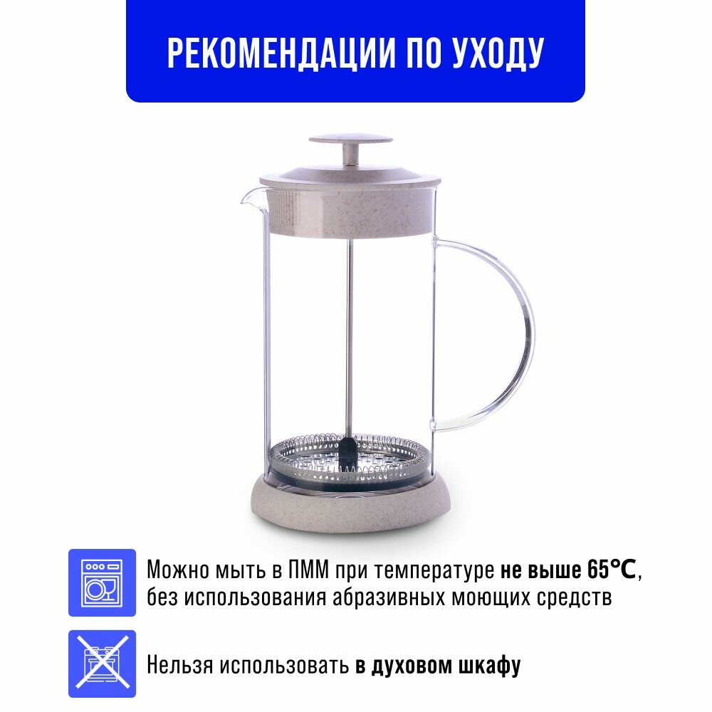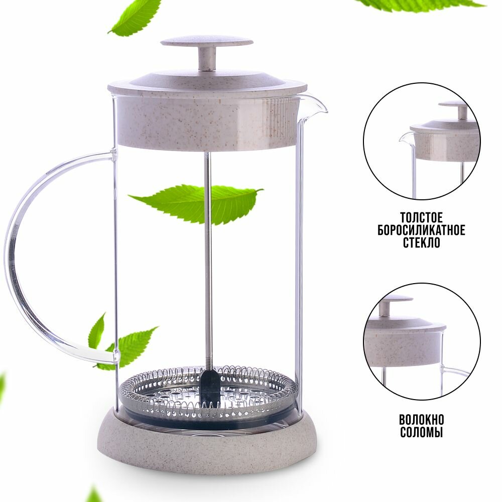 | Дополнительная информация | корпус - боросиликатное стекло; крышка - волокно пшеничной соломы, нержавеющая сталь; ручка - боросиликатное стекло; основание - силикон. |